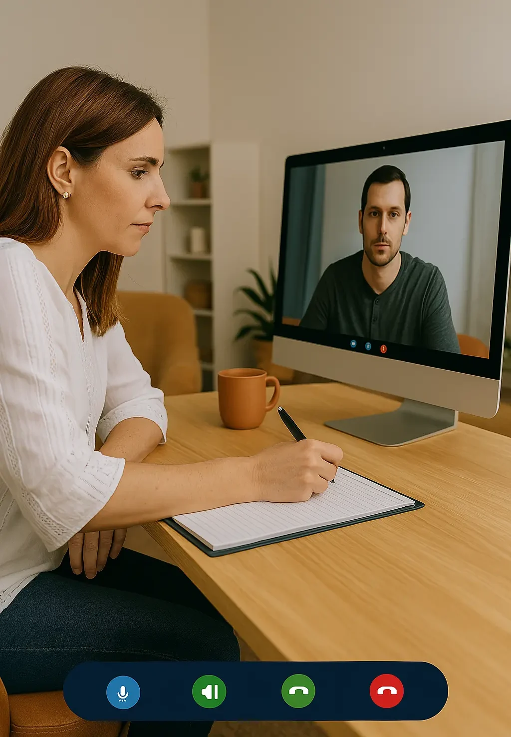 Na hora marcada, é só clicar no link da sessão. Em poucos segundos, estamos conectados — sem trânsito, atrasos ou interrupções externas.